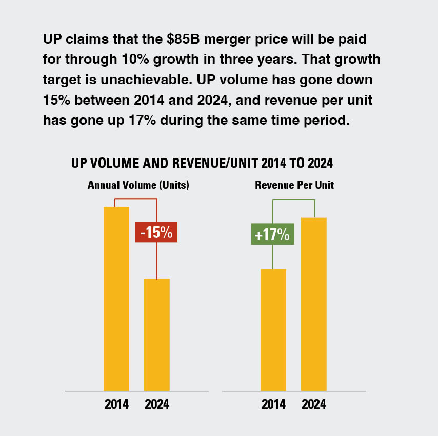 • The proposed UP-NS merger would concentrate nearly half of the nation's freight under one railroad – limiting shipper choices and reducing long-term competitiveness.